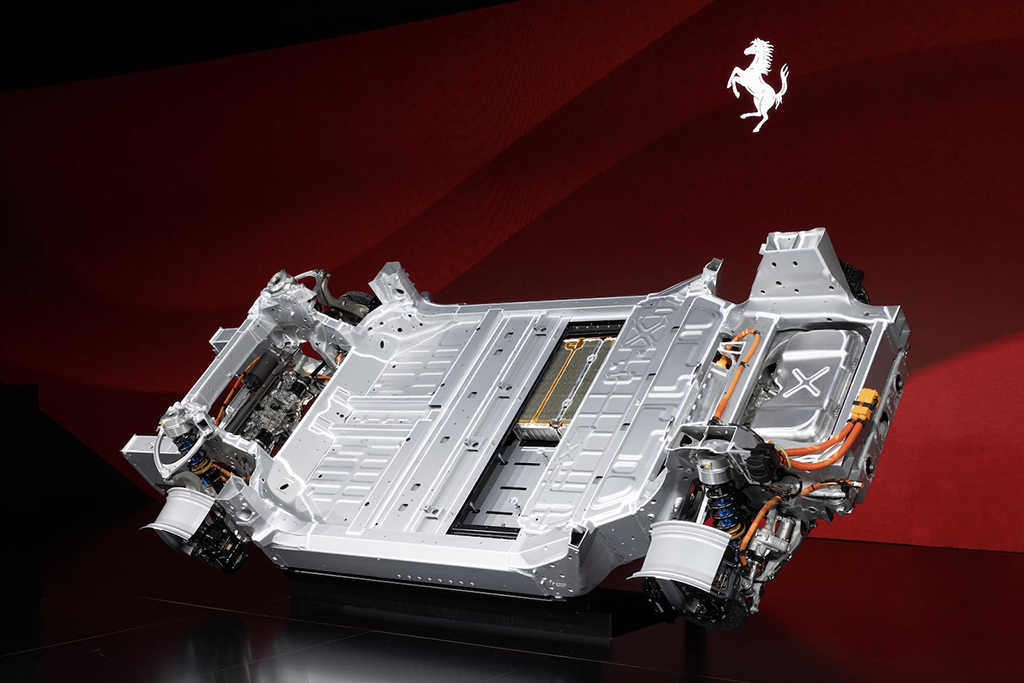 Die Batterieeinheit wurde komplett eigenständig von Ferrari entwickelt und produziert. Sie ist in die Bodenplatte integriert und senkt den Schwerpunkt um 80 Millimeter gegenüber einem vergleichbaren Modell mit Verbrennungsmotor.