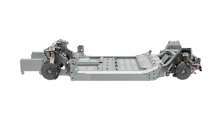 Das Chassis fungiert als struktureller Schutz für den Akku. Dieser ist im Chassis untergebracht, mit Zwischenräumen zwischen den Modulen und den Schwellern. So ist sichergestellt, dass die Energie bei einem Seitenaufprall vollständig von den Schwellern absorbiert wird. Die Zellen sind in der Mitte der Module konzentriert, was die Absorptionsfähigkeit weiter erhöht. Die untere Modulkühlplatte bietet zudem Schutz vor Beschädigungen bei einem Aufprall von unten. Das patentierte, firmeneigene Montageverfahren für den Akku erhöht zudem die strukturelle Steifigkeit.
